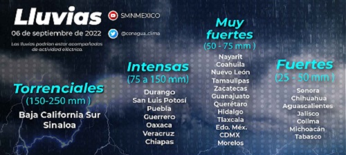 La Coordinación Nacional de Protección Civil (CNPC) y la Comisión Nacional del Agua (Conagua) prevén que el huracán Kay no toque tierra directamente sobre la Península de Baja California, pero que las afectaciones se sientan como tal ante la cercanía de su trayectoria. Además, informaron el cierre de aeropuertos como una de las medidas de prevención, aunque esta será llevada a cabo conforme evoluciones la situación en cada entidad.