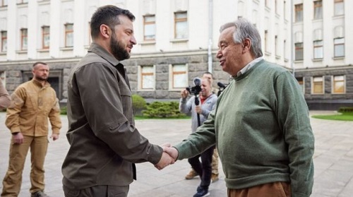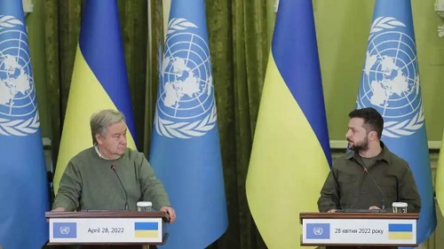 En la conferencia conjunta, Zelensky afirmó que Guterres ha tenido la oportunidad de presenciar por primera vez ‘todos los crímenes de guerra’ cometidos por Rusia en Ucrania.