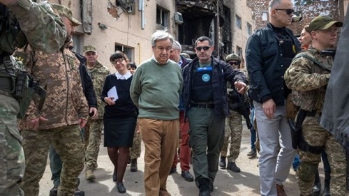 Guterres también visitó otros lugares en los que Ucrania acusa a Rusia de haber cometido crímenes de guerra. Moscú niega esta acusación.