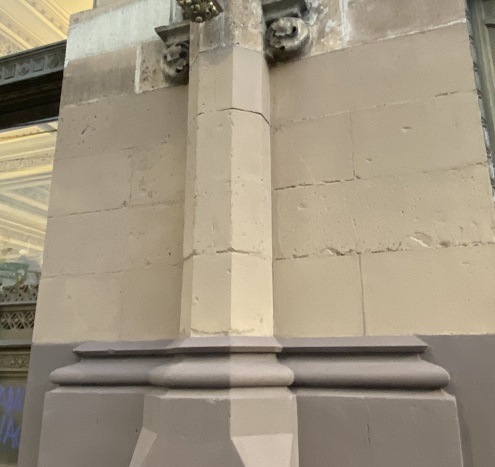 El usuario @JPAlvarezGuedea publicó: “Sobre la centenaria cantera del Palacio Postal (Correos) de CdMx están pintando con pintura vinílica. Es decir, directo sobre la piedra. Esta no es una práctica de restauración o mantenimiento adecuada para ningún edificio histórico, o sí @INAHmx? @Claudiashein” (sic).